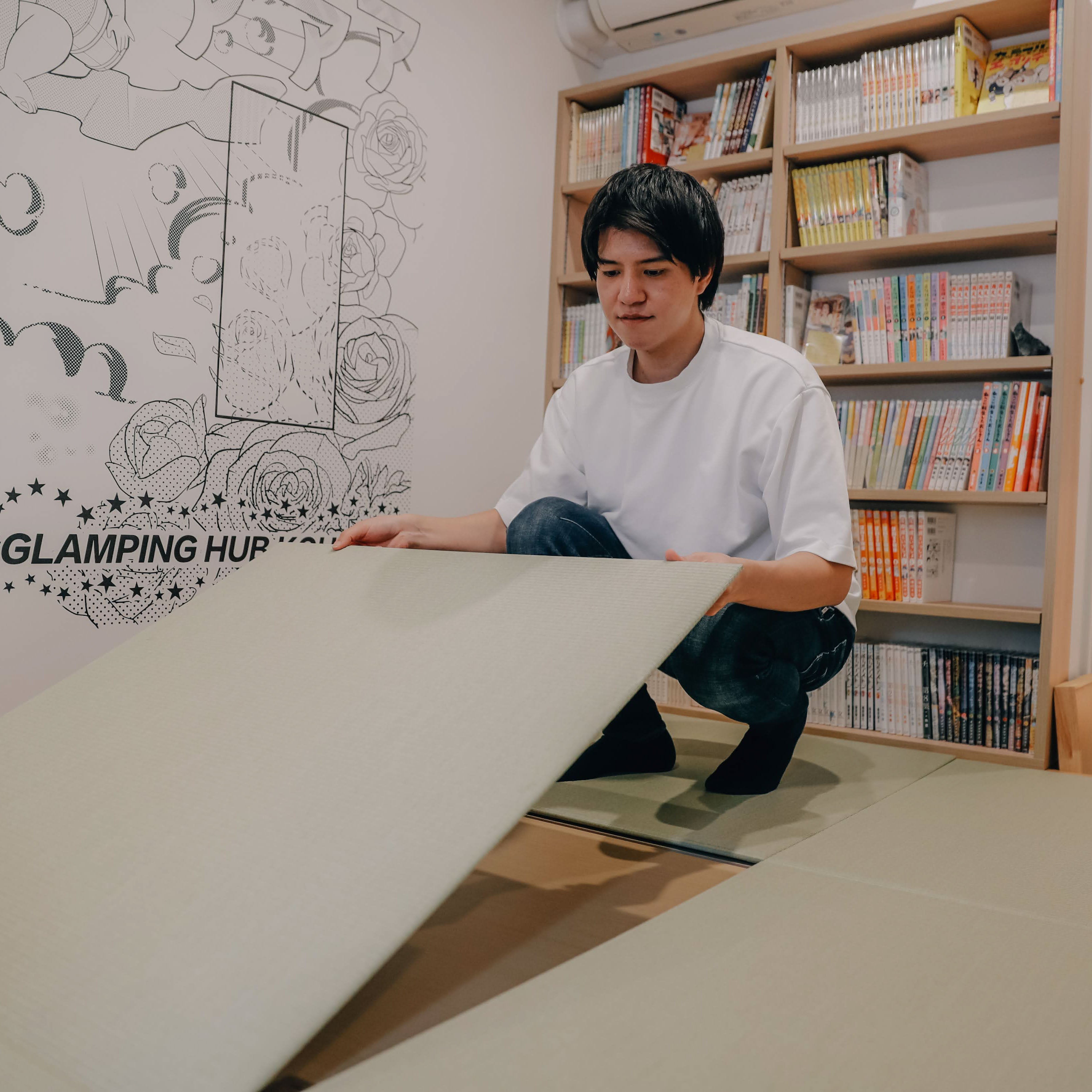 映画、マンガ、キャンプギアなど、好きなモノに囲まれながら、心ゆくまでととのえます。