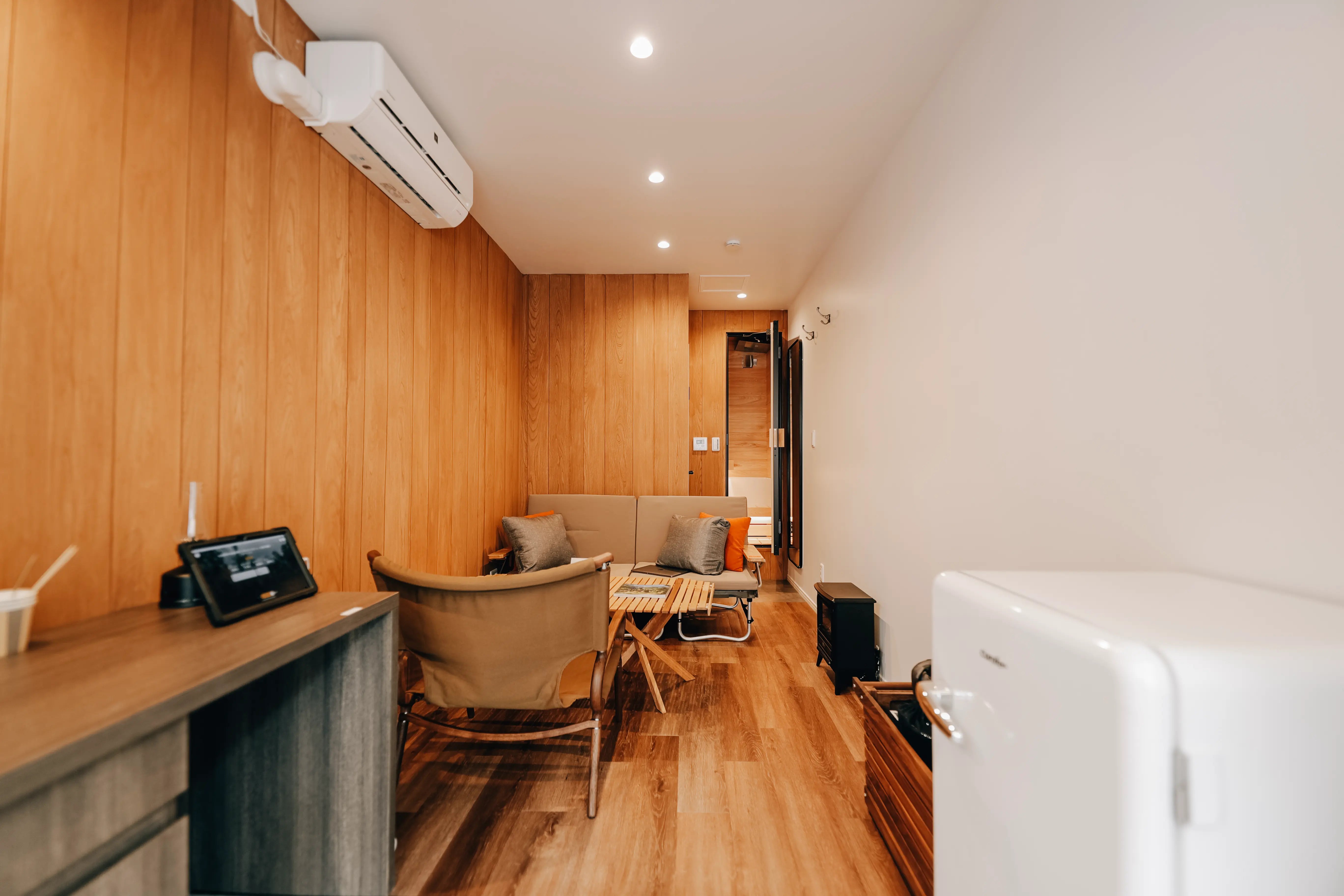 普段なかなか体験できないアウトドアの世界を、手軽に体験できる部屋です。本格的なキャンプギアに囲まれながら、まるで自然の中にいるかのような気分でリラックス。サウナで汗を流した後は、マシュマロを焼いたりコーヒーをドリップしたり。都会の喧騒を忘れ、自分だけのプチキャンプを味わえます。